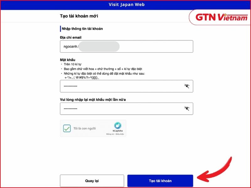 - Tạo tài khoản bằng địa chỉ email cá nhân và thiết lập mật khẩu.