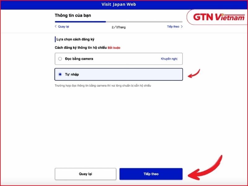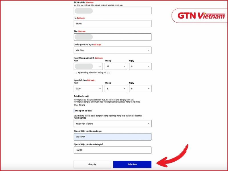 Nhập thông tin cá nhân và hộ chiếu