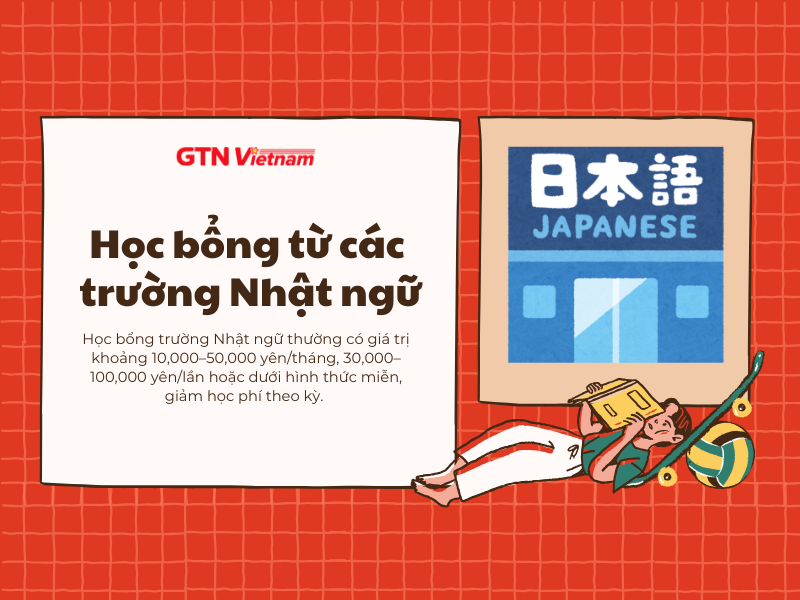 Học bổng du học Nhật Bản từ các trường Nhật ngữ là các chương trình hỗ trợ tài chính do chính các trường Nhật ngữ tại Nhật Bản cấp cho du học sinh quốc tế đang theo học. Các học bổng này nhằm khuyến khích học viên có thành tích học tập và tỷ lệ chuyên cần tốt, đồng thời hỗ trợ học phí và chi phí sinh hoạt trong thời gian học tiếng, giúp du học sinh ổn định cuộc sống trong giai đoạn đầu tại Nhật Bản.